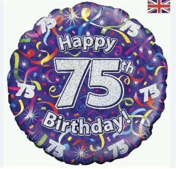 75th Birthday Streamers Holographic Standard Foil Balloon