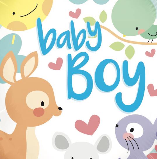 A round baby boy 18" Foil Balloon. Filled with helium.