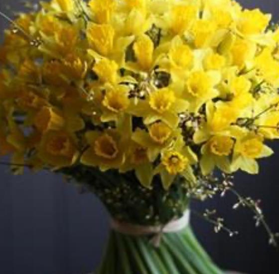 A beaufiful big bunch of English Daffodils mixed with a touch of greens.