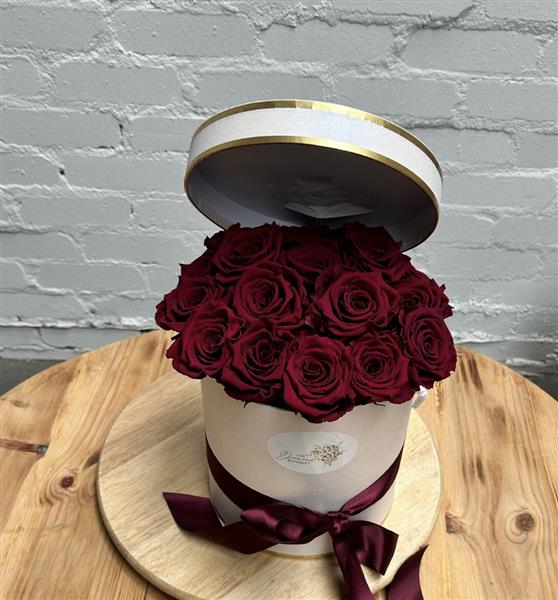 Our preserved roses are made from 100% real flowers. The roses are cut in their most beautiful stage, before going through a preservation process to make them last long (up to 3 years!) and keep their vibrant colours. The stabilisation liquid replaces the sap and water within the plant, effectively forming a still-image of nature, creating a unique and 100% natural product. The preserved flowers and plants remain beautiful and unchanged for months without watering, light and virtually maintenance-free.