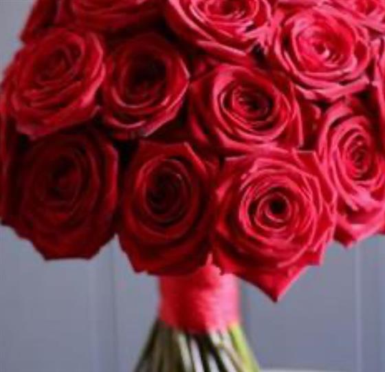 No foliage, no fuss, just a perfect dome of Red Naomi Roses.