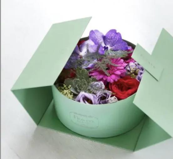 A delightful flower arrangement hidden inside a surprise box using a beautiful array of florist choice flowers including roses and other matching flowers.